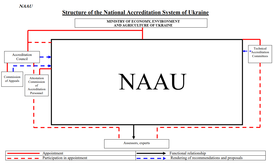 Accreditation is conducted by NAAU according to the Law of Ukraine “On Accreditation of Conformity Assessment Bodies” with regard to the requirements of international and European accreditation standards in the main areas: